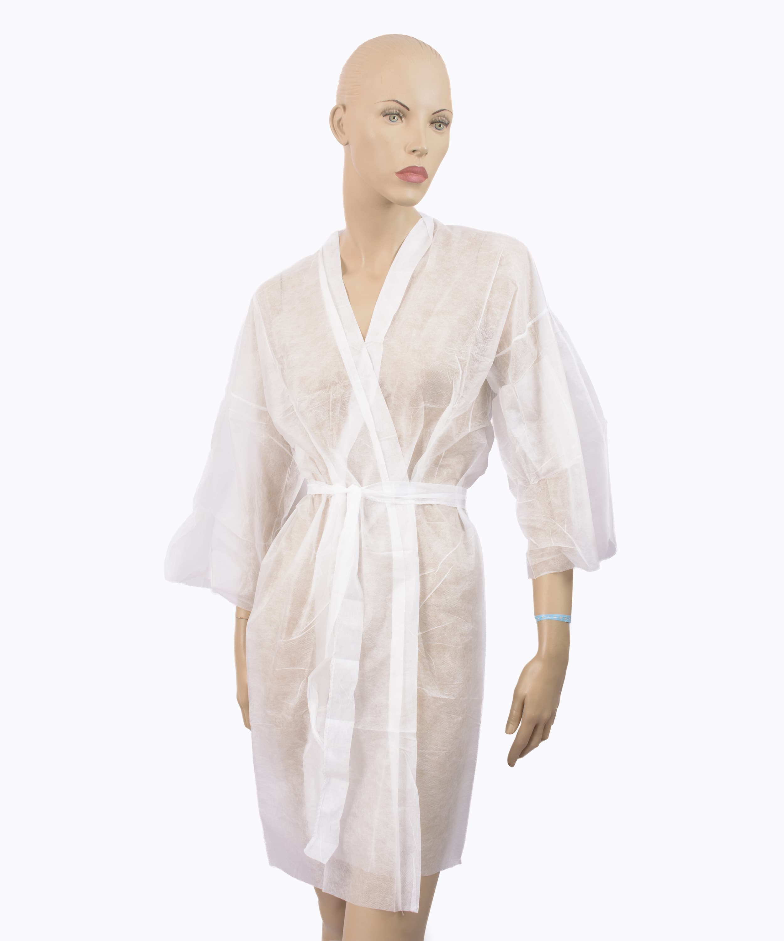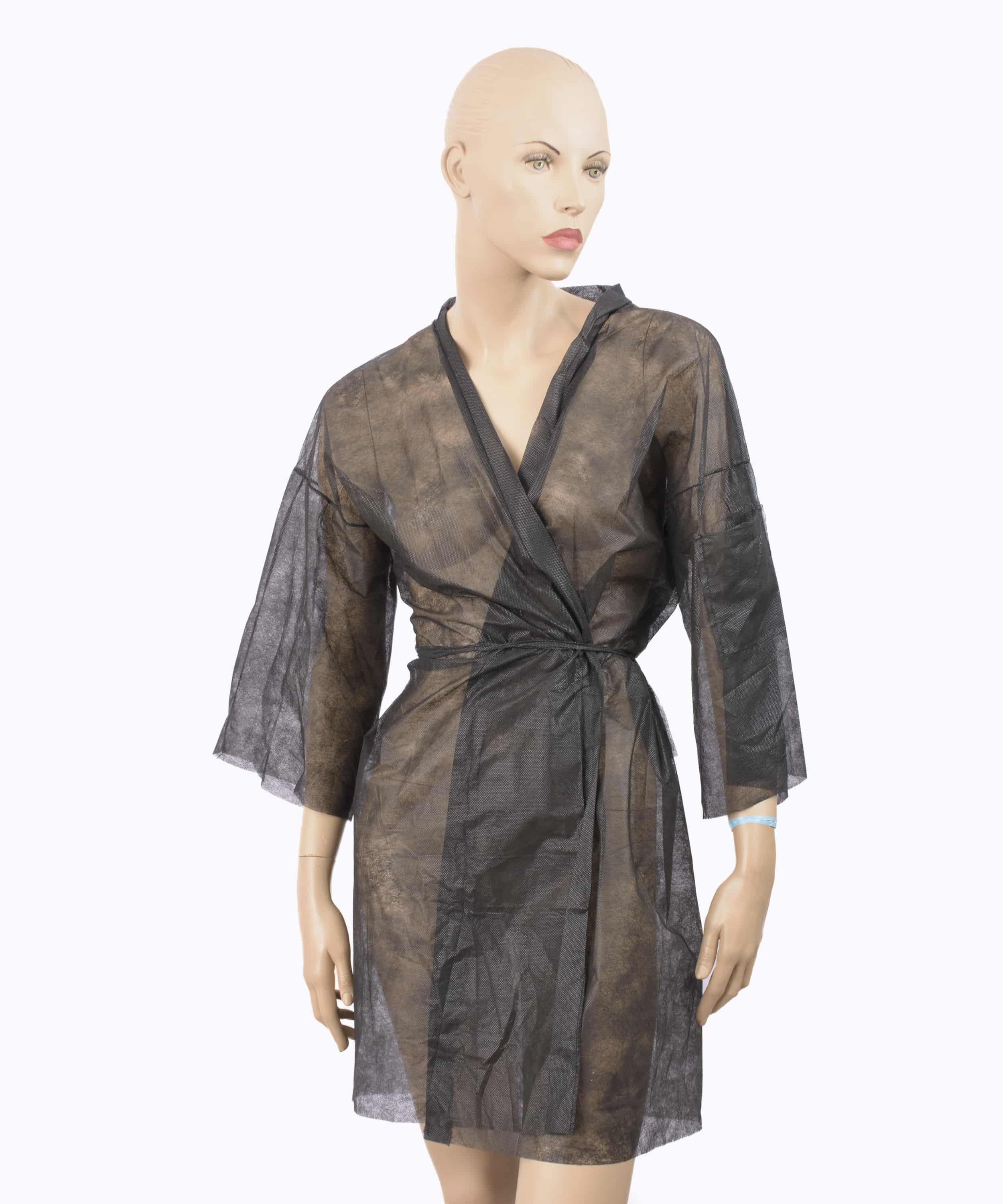 Presentación: caja de 100 unidades. Las batas están fabricadas en polipropileno de alta resistencia, protegen el vestuario o la piel del usuario. La principal ventaja de los kimonos desechables es la higiene, suponiendo a la vez, un considerable ahorro energético al no tener que lavarlas